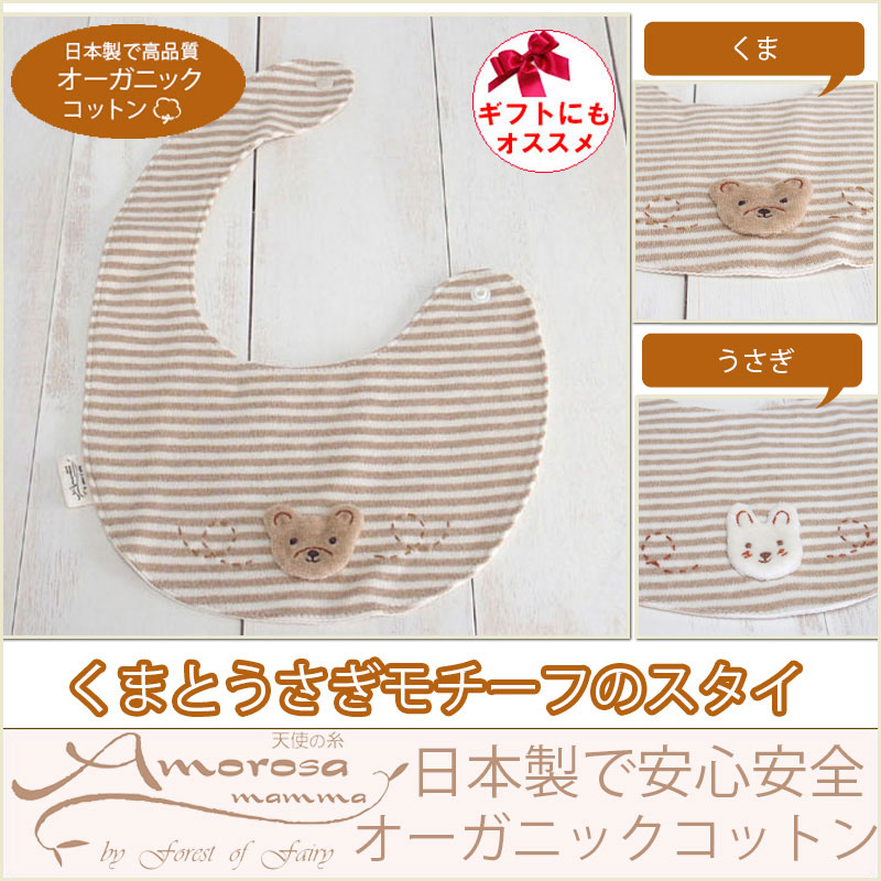 オーガニックコットン うさぎモチーフ スタイ よだれかけ・ミトン・靴下・ガーゼハンカチ・にぎにぎスティックの5点セット!日本製 Amorosa mamma アモローサマンマ!全て赤ちゃんの肌に優しいオーガニックコットン 日本製で高品質当商品はうさぎモチーフになります。