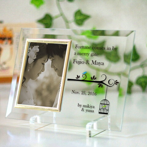 ギフト対 応 ガラス製のフォトフレームです ガラス部分にオリジナルでメッセージを印刷いたします。
